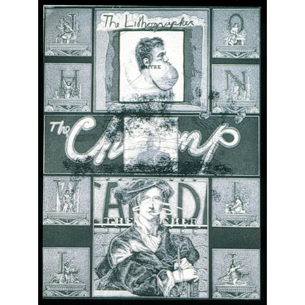 DescriptionA figurative print depicting three images of men arranging vertically and flanked by decorative letters spelling "John Will". The three figures have text accompanying them, reading (from top to bottom) "The Lithographer", "The Champ" and "The Etcher". figurative, figures, male, letters, text, handwriting self-portrait