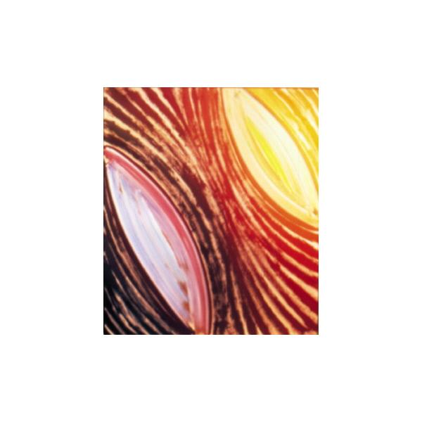 DescriptionAn abstract painting composed of two ovals at opposite corners and repeating curving lines extending around them. abstract, shapes, ovals, lines, repetition, pattern