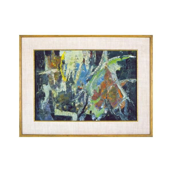 DescriptionAn abstract painting composed of layered brush strokes in various colours against a dark background. abstract, layers, brush strokes