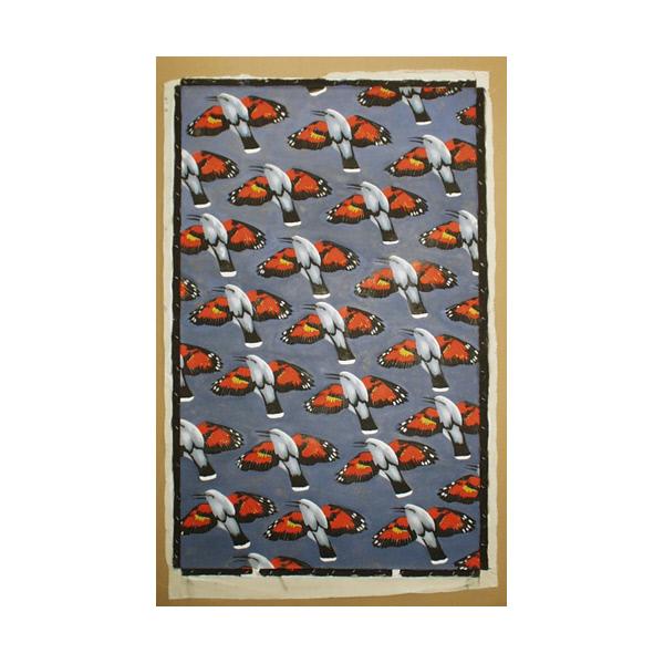 DescriptionA figurative painting depicting diagonal rows of birds with white bodies and orange wings.   figurative, animals, birds, rows, repetition, pattern