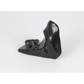 Kingwatsiak Jaw, also known as “King”, was born in Keatuk in 1962 and lived in Kinngait, Nunavut. He began to carve early in life at age eight, growing up with relatives who were also artists. Nanuit (polar bears) were a favoured subject in Jaw’s work, including the piece “Bear on iceberg” in the University of Lethbridge art collection. His sculpture was included in the Marion Scott Gallery’s “Major/Minor” 1996 exhibition in Vancouver. Public collections with works by Kingwatsiak Jaw include the University of Michigan Museum of Art, the University of Pennsylvania Museum of Archaeology and Anthropology, and the University of Delaware museum collection. He passed away in 2012.